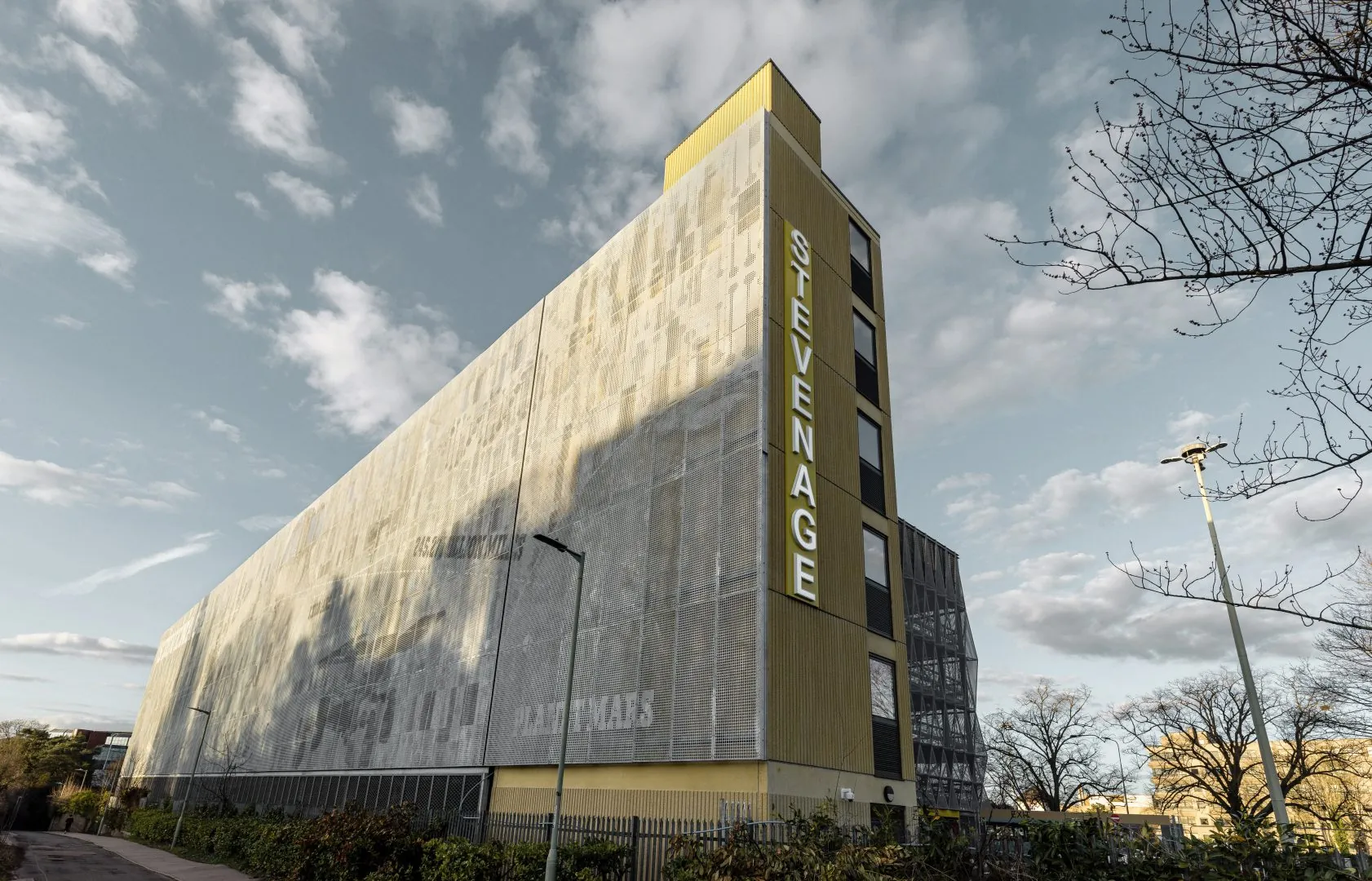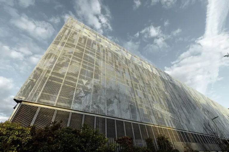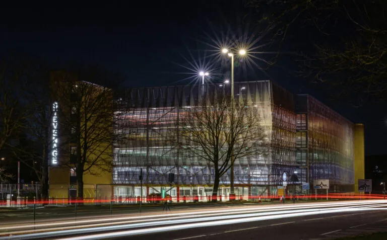 As the gateway to the town, Stevenage Station is clad in a perforated steel façade, featuring a number of the town’s landmarks. Each level of the multi-storey car park is also coated in a different colour. This helps with orientation. It also creates an attractive play of light in the dark. All colours, materials and graphics were chosen in collaboration with the local authorities to ensure that the car park blends in harmoniously with its urban surroundings and to create maximum identification with the building.
