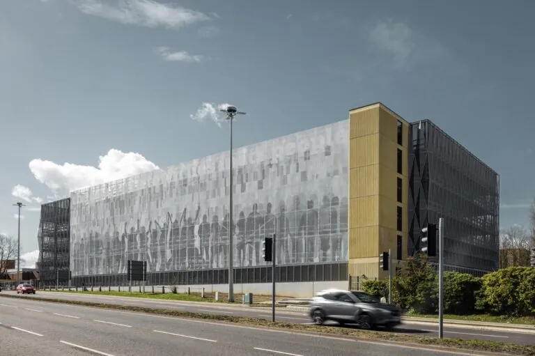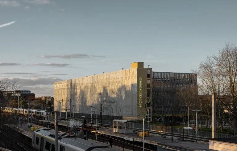 Stevenage Station is located in the center of the British city of Stevenage. As in many cities, there was a desire to reduce traffic volumes. Together with Fatkin Architects, Huber Parking has designed a parking garage in the immediate vicinity of the North Station and the bus station that meets this requirement: It is not just a place to park cars, but also bundles a variety of means of transport in one place, making it the city’s new mobility hub .