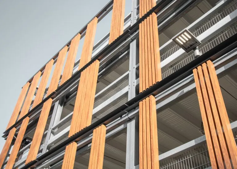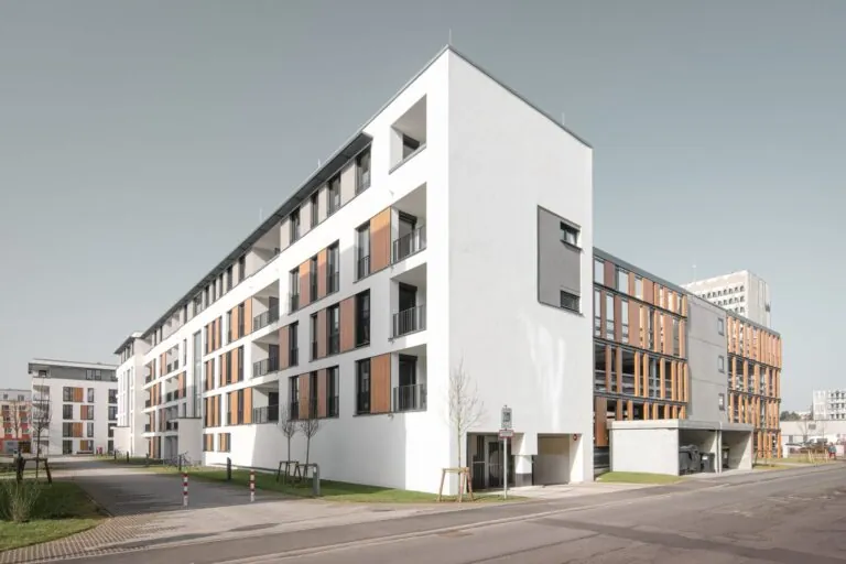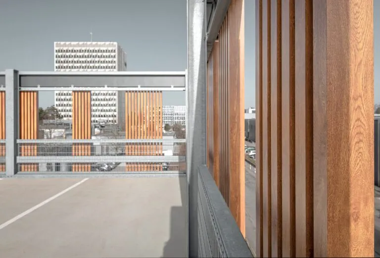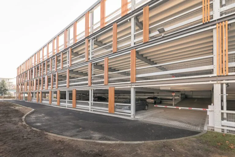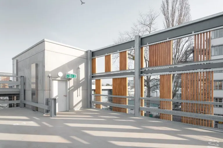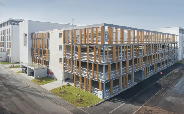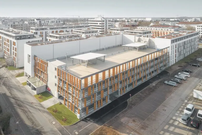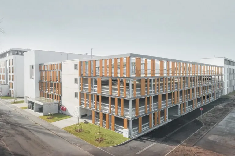 Durch die Bereitstellung mehrstöckigen Parkraums konnten auf dem Gelände Bestandsbäume erhalten und neue Bäume gepflanzt werden. Auch für einen Spielplatz blieb genügend Raum, was den städtebaulichen Mehrwert des Projekts unterstreicht. Das Parkhaus Holzhofpark zeigt, wie durch verringerten Flächenanspruch des ruhenden Verkehrs mehr Bauland für Wohnungsbau in städtischer Lage möglich ist und wie dies die nachhaltige Attraktivität von Wohnstandorten ästhetisch und qualitätvoll erhöhen kann.